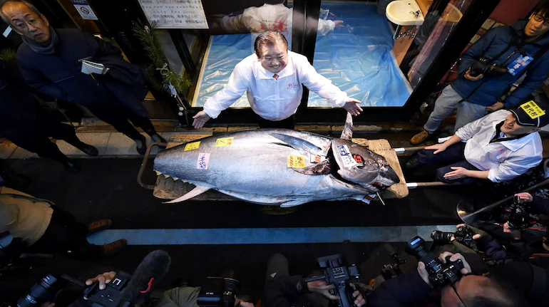 ജപ്പാനിലെ പ്രശസ്തമായ ‘സുഷി സാന്മൈ’ റസ്റ്ററന്റ് ശൃംഖലയുടേയും ഉടമയും ‘ട്യൂണ രാജാവ്’ എന്നറിയപ്പെടുന്ന കിയോഷി കിമുറയാണ് ഈ മത്സ്യത്തെ സ്വന്തമാക്കിയത്. കടലിന്റെ ആഴങ്ങളില് ആയിരക്കണക്കിന് മൈലുകള് സഞ്ചരിക്കുന്ന മീനുകളാണ് ബ്ലൂഫിന് ട്യൂണകള്. വംശനാശ ഭീഷണി നേരിടുന്നതിനാല് ഇവയുടെ വേട്ടയാടലിന് കര്ശന നിയന്ത്രണങ്ങളുമുണ്ട്. പ്രായവും വലിപ്പവും കൂടുന്നതിനനുസരിച്ച് ഇവയുടെ വിലയും വര്ദ്ധിക്കും.