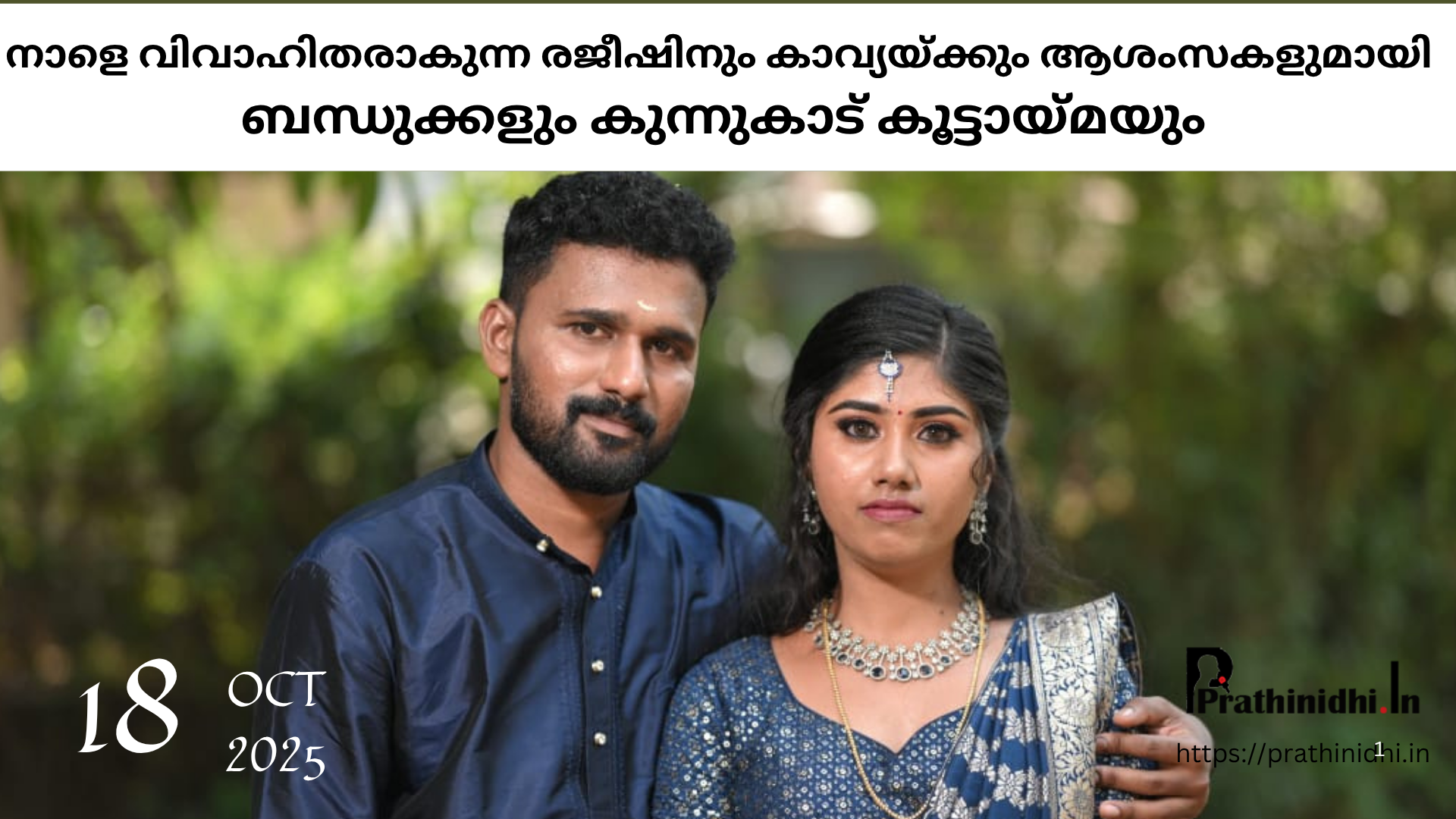 കുന്നുകാട് എലപ്പുള്ളി സ്വദേശികളായ വി.രാമുവിന്റേയും ആര് സുമതിയുടേയും മകള് കാവ്യയും രജീഷും നാളെ വിവാഹിതരാകും. ഇരുവര്ക്കും ബന്ധുക്കളുടേയും കുന്നുകാട് നിവാസികളുടേയും വിവാഹ മംഗളാശംസകള് . ഞായറാഴ്ച രാവിലെ 10.30നും 11.30 ഇടയിലുള്ള മുഹൂര്ത്തത്തില് ശ്രീ വിശ്വേശ്വര ക്ഷേത്രത്തില് വച്ചാണ് താലികെട്ട്. മേനോന്പാറ, കഞ്ചിക്കോട് സ്വദേശികളായ ചന്ദ്രന്റേയും ഓമനയുടേയും മകനാണ് രജീഷ്.