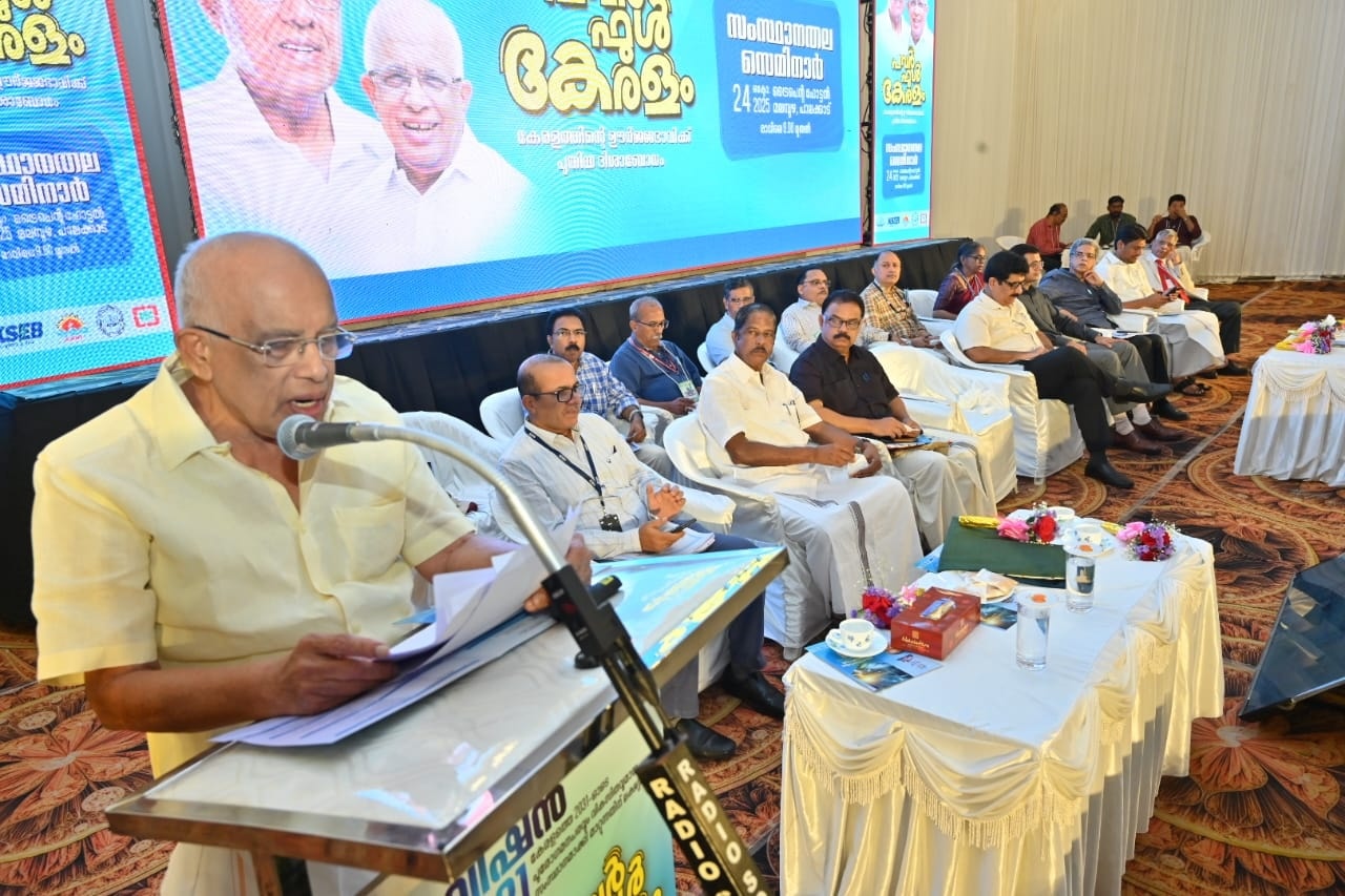 പാലക്കാട്: സുസ്ഥിര ഊര്ജ്ജ പരിവര്ത്തനത്തിന് കേരളത്തെ ദേശീയ മാതൃകയാക്കുമെന്ന് വൈദ്യുതി വകുപ്പ് മന്ത്രി. കെ. കൃഷ്ണന് കുട്ടി. വെല്ലുവിളികള്ക്കിടയിലും സംസ്ഥാന വൈദ്യുതി മേഖലയെ പൊതുമേഖലയില് നിലനിര്ത്തിക്കൊണ്ട് കെ.എസ്.ഇ.ബി യെ ലോകോത്തര നിലവാരത്തിലേക്ക് ഉയര്ത്തുമെന്നും മന്ത്രി പറഞ്ഞു. ‘വിഷന് 2031’ സെമിനാറുകളുടെ ഭാഗമായി മലമ്പുഴ ഹോട്ടല് ട്രൈപ്പന്റയില് ഊര്ജ വകുപ്പ് സംഘടിപ്പിച്ച സംസ്ഥാനതല സെമിനാര് ‘പവര്ഫുള് കേരള’യിലെ ആമുഖ സെഷനില് കരട് നയരേഖ അവതരിപ്പിച്ച് സംസാരിക്കുകയായിരുന്നു മന്ത്രി. സംസ്ഥാനത്ത് തോറിയം അധിഷ്ഠിത വൈദ്യുതി ലഭ്യമാക്കുന്നിനുള്ള സാധ്യതകള് പരിശോധിക്കുമെന്നും മന്ത്രി പറഞ്ഞു.