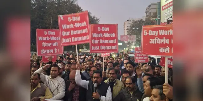 ന്യൂഡല്‍ഹി: ജോലി സമയങ്ങള്‍ ആഴ്ചയില്‍ അഞ്ചു ദിവസമായി കുറയ്ക്കണമെന്നാവശ്യപ്പെട്ട് ബാങ്ക് ജീവനക്കാര്‍ നാളെ സമരത്തിലേക്ക്. ഓള്‍ ഇന്ത്യ ബാങ്ക് എംപ്ലോയീസ് യൂണിയന്‍ (യുഎഫ്ബിയു) ആണ് രാജ്യ വ്യാപകമായി സമരത്തിന് ആഹ്വാനം ചെയ്തിരിക്കുന്നത്. 24ന് നാലാം ശനിയും 25ന് ഞായറാഴ്ചയും 26 റിപ്പബ്ലിക് ദിനവും കൂടി ഒരുമിച്ച് വന്നതോടെ തുടര്‍ച്ചയായ നാലു ദിവസത്തെ ബാങ്കിങ് സേവനങ്ങള്‍ ലഭിക്കാത്ത സാഹചര്യമുണ്ട്. ഇത് ബാങ്കിങ് പ്രവര്‍ത്തനങ്ങളെ ബാധിക്കുന്നുണ്ട്.
