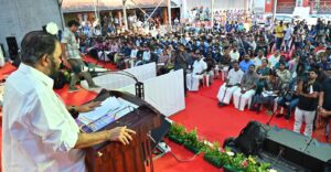 പൊതു വിദ്യാഭ്യാസ വകുപ്പിന്റെ നേതൃത്വത്തില് സര്ക്കാര്, മാനേജ്മെന്റ് ഉള്പ്പെടെ വിവിധ സ്കൂളുകളില് നടത്തുന്ന പാഠ്യ പാഠ്യേതര പരിപാടികള് ആരംഭിക്കുന്നതിന് മുന്പ് വ്യത്യസ്തമാര്ന്ന ഗാനങ്ങളാണ് ആലപിക്കുന്നത്. ഇതിന് പകരമായി മതനിരപേക്ഷതയും, ശാസ്ത്രചിന്തയും ഭരണഘടന മൂല്യം ഉയര്ത്തിപ്പിടിക്കുന്ന ഒരേ ഗാനം സ്കൂളുകളില് ആലപിക്കുന്നതിനെപ്പറ്റി സമൂഹം ചര്ച്ച ചെയ്യണമെന്നും മന്ത്രി കൂട്ടിച്ചേര്ത്തു. തദ്ദേശ സ്വയംഭരണ എക്സൈസ് വകുപ്പ് മന്ത്രി എം.ബി രാജേഷ് ചടങ്ങില് അധ്യക്ഷത വഹിച്ചു. സംസ്ഥാനത്ത് അറിവിന്റെ ഏറ്റവും വലിയ ഉത്സവമാണ് ശാസ്ത്രമേളയെന്ന് അധ്യക്ഷ പ്രസംഗത്തില് എം ബി രാജേഷ് പറഞ്ഞു. സ്കൂള് ശാസ്ത്രമേളകളില് ഉയര്ന്നുവരുന്ന ഒട്ടേറെ ആശയങ്ങള് വലിയ മാറ്റങ്ങള് ഉണ്ടാക്കുന്ന നൂതനാശയങ്ങളായി പിന്നീട് മാറിയിട്ടുണ്ടെന്നും അദ്ദേഹം കൂട്ടിച്ചേര്ത്തു. ഇന്ത്യയുടെ ഭരണഘടന തന്നെ പൗരന്മാരുടെ മൗലിക കടമകളില് ഒന്നായി ചൂണ്ടിക്കാണിക്കുന്നത് ശാസ്ത്ര അവബോധം വളര്ത്തുക എന്നതാണ്. നിര്ഭാഗ്യവശാല് അതിന് നേരെ വിപരീതം ആയിട്ടുള്ള പ്രവണതകളാണ് കഴിഞ്ഞ കുറച്ചു കാലങ്ങളായി രാജ്യത്ത് മേല്കൈ നേടിയിട്ടുള്ളതെന്ന് സൂചിപ്പിച്ച മന്ത്രി, ശാസ്ത്ര വിരുദ്ധമായിട്ടുള്ള അഭിപ്രായങ്ങള്, വിജ്ഞാന വിരുദ്ധമായിട്ടുള്ള പ്രചരണങ്ങള് തുടങ്ങിയവ ഉത്തരവാദിത്തപ്പെട്ടവര് തന്നെ നടത്തുന്നത് ഇന്ന് പതിവായി മാറിയിട്ടുണ്ടെന്നും കൂട്ടിച്ചേര്ത്തു. വര്ഗീയത വളരുന്നതോടൊപ്പം ശാസ്ത്രവിരുദ്ധതയും വിജ്ഞാനവിരുദ്ധതയും വളരുന്നു. ഇവ രണ്ടും വര്ഗീയതയ്ക്ക് വളക്കൂറായി മാറുകയും ചെയ്യുന്നു. ശാസ്ത്രത്തെയും മിത്തിനെയും കൂട്ടിക്കുഴച്ച് എല്ലാ അറിവും മുന്കാലങ്ങളില് തന്നെ ഉണ്ടായിരുന്നു എന്ന് സ്ഥാപിക്കലാണ് ശാസ്ത്ര വിരുദ്ധ പ്രചാരണത്തിന്റെ രീതി എന്നും മന്ത്രി പറഞ്ഞു.
